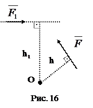 В этом случае, момент силы равен произведению силы на плечо, и имеет знак (+), если сила поворачивает тело вокруг центра против часовой стрелки (рис.16).