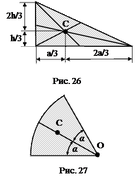 Среди экспериментальных способов можно отметить: Метод взвешивания (рис. 28). По известным: весу тела P, показаниям весов R и расстоянию а, определяют расстояние х из уравнения: ∑mO = - P∙x + R∙a; откуда: х = R∙a /P. Метод подвешивания. При этом способе тело подвешивают на нити сначала в одной точке и проводят линию, продолжающую нить, затем в другой точке, точка пересечения этих линий и дает положение центра тяжести.