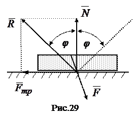 tg φ = Fтр/N = f. Если равнодействующая F внешних сил, приложенных к телу, проходит внутри угла трения, то тело не выйдет из равновесия при сколь угодно, большей силе