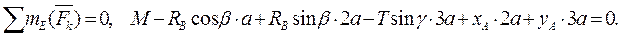 Подставив, в составленные уравнения числовые значения заданных величин и решив эти уравнения, определим искомые реакции. Проверкой является уравнение суммы моментов от сил и реакций относительно точки, которую еще не рассматривали в процессе решения задачи. Например: