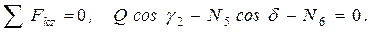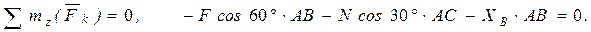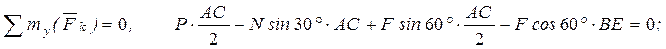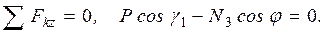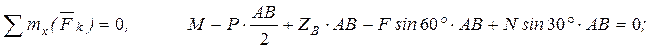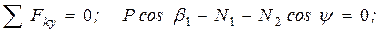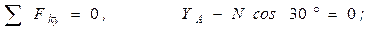 Решив уравнения (1), (2), (3) при заданных числовых значениях силы Р и углов, получим: N1 = 349 H, N2 = - 345 H, N3 = 141 H. 2. Рассмотрим равновесие узла М. На узел действует силы Составим уравнения равновесия: