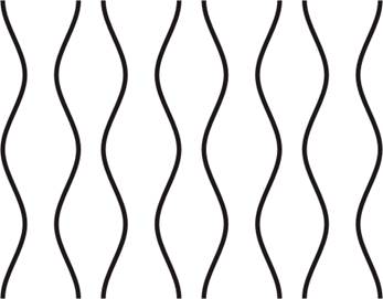 Рис. 13. Пример Э. Рубина В равной степени можно представить, что профили - основные фигуры, а белая форма - фон за ними, или что белая ваза изображена на черном фоне. И фон, и фигуры в данном случае равнозначны по своему воздействию на зрителя. Такие двойственные изображения, переставляя акценты, создают интригу. В результате формируется зрительный ряд, позволяющий и аккумулировать внимание, и добиться выразительности. «Хорошая» линия. Этот фактор определяет восприятие пересечений двух или более контуров. Зрительная система в соответствии с действием этого фактора старается сохранить характер кривой до пересечения и после него. Так, например, на рис.14 наблюдатель чаще всего видит прямую изогнутую линию, хотя в принципе рисунок мог бы состоять из элементов (рис.15) Действие этого фактора тем сильнее, чем регулярнее кривая.