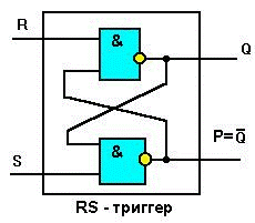 Схема, поясняющая работу МДП-транзистора в качестве элемента запоминающего устройства а) открытое состояние; б) закрытое состояние Одним из недостатков приведенной элементарной ячейки информации является необходимость подведения на все время хранения информации напряжения к затворному электроду. При отключении напряжения питания записанная информация теряется. Триггер — это логическое устройство, способное хранить 1 бит информации. К триггерам относятся устройства, имеющие два устойчивых состояния. Простейший триггер — RS-триггер, образован из двух элементов И-НЕ (или ИЛИ-НЕ). Он позволяет запоминать 1 бит информации, поскольку информация в компьютере представляется в двоичном виде. Cхема RS-триггера