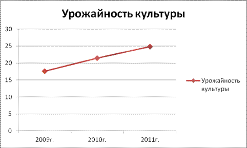 Коэффициент вариации меньше 10%, ряд динамики считается устойчивым, необходимо провести расчеты показателей устойчивого динамического ряда урожайности культур. Таблица 3 - Показатели динамики урожайности зерновых в ООО Агрофирма «Пригородное» за период 2009-2011гг.