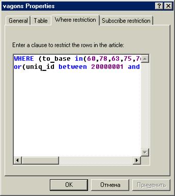 Создание новой публикации (подписки) Указываются таблицы, которые необходимо реплицировать. Для каждой таблицы можно определить набор столбцов включенных в публикацию И определить условие where для выборки необходимых строк.