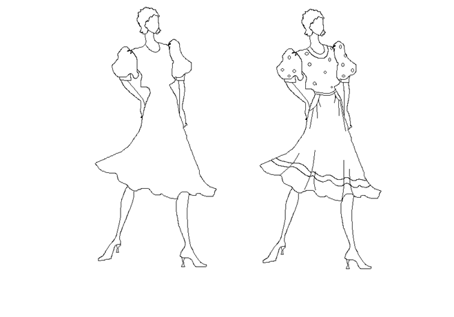 - Микроструктуры костюма - Макроструктуры костюма Композиционное поле костюма наполняется структурами: o Макроструктура – элемент композиционного строения модели, непосредственно участвующий в формообразовании оболочки (спинка, полочка, рукава, кокетки и проч.) o Микроструктура – элемент композиционного строения модели, не участвующий в формообразовании оболочки (воротники, манжеты, карманы, клапаны и проч.) Качественные и количественные характеристик макро- и микроструктур напрямую зависят от транслируемого моделью образа и корректируются в соответствии с законами и свойствами композиции. Пример: