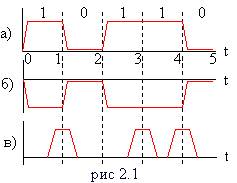 Выше отмечалось, что логические функции и их аргументы принимают значение лог.0 и лог.1. При этом следует иметь в виду, что в устройствах лог.0 и лог.1 соответствует напряжению определенного уровня (либо формы). Наиболее часто используется два способа физического представления лог.0 и лог.1: потенциальный и имульсный. При потенциальной форме (рис. 2.1,а и 2.1,б) для представления лог.0 и лог.1 используется напряжение двух уровней: высокий уровень соответствует лог.1 (уровень лог.1) и низкий уровень соответствует лог.0 (уровень лог.0). Такой способ представления значений логических величин называется положительной логикой. Относительно редко используют так называемую отрицательную логику, при которой лог.1 ставят в соответствии низкий уровень напряжения, а лог.0 - высокий уровень. В дальнейшем, если это не оговаривается особо, будем пользоваться только положительной логикой.