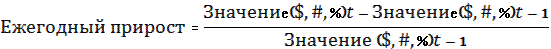 Конструкция Процентный прирост является центральным моментом анализа ежегодного прироста. Он дает ответ на следующий вопрос: «Чего достигла компания в нынешнем году в сравнении с предыдущим?» Разделив результаты за текущий период на результаты предшествующего периода, мы получим относительный коэффициент. Вычитанием одно из другого можно выявить рост или спад между периодами. При оценке сравнительных показателей можно сказать, что результаты 2-го года, например, составляют 110% результатов 1-го года. Чтобы перевести эти цифры в коэффициент прироста, необходимо только вычесть 100%. За рассматриваемый период часто принимается год, хотя можно выбрать любой другой интервал времени.