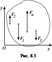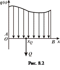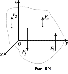 Отримані результати дозволяють замінити розподілене навантаження рівнодійною силою в) У випадку просторової системи паралельних сил (рис. 8.3) умови рівноваги зводиться до виконання наступних рівнянь: