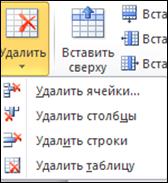 Ø Для удаления одной или нескольких строк или столбцов их необходимо выделить и выбрать команду Удалить столбцы (строки), или выбрать соответствующую команду в списке кнопки Удалить (рис. 4).