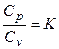 Отношение теплоемкости при постоянном давлении к теплоемкости при постоянном объеме, обозначаемое буквой К, часто используется в различных термодинамических расчетах. Показатель К называют показателе адиабаты. Значение К можно выразить через отношения массовых, объемных или мольных теплоемкостей: