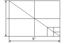 Рис. 10. Варианты деления прямаугольника на основе Модулора. Модулор Корбюзье представляет собой гармонические ряды чисел, которые связаны в единую систему и предназначены для использования в архитектуре и дизайне - для гармонизации всей среды, в которой обитает человек. Корбюзье мечтал о перестройке с помощью Модулора всей архитектурной и предметной среды. Сам он создал несколько прекрасных образцов архитектуры, но о более широком применении Модулора в существующих условиях не могло быть и речи. Модулор использовался в ряде слуйаев в дизайне и в графическом дизайне - при конструировании печатных изданий. На рис. 16 приводятся варианты деления прямоугольника 3:4, приведенные Корбюзье для демонстрации возможностей конструирования с помощью Модулора. В разработку вопроса пропорционирования и использования золотого сечения нес свой вклад Д.Хэмбидж. В 20-м году в Нью-Йорке вышла его книга "Элементы динамической симметрии". Хэмбидж исследовал динамическую симметрию, которую он обнаружил в ряде прямоугольников, с целью ее практического применения художниками в композиционном построении. Он делает попытку раскрыть секреты, которыми пользовались древние греки, добиваясь гармонического решения формы. Его внимание привлекли свойства прямоугольников, составляющих ряд, где каждый последующий прямоугольник строится на диагонали предыдущего, начиная с диагонали квадрата Ц2. Это прямоугольники Ц4, Ц5 (с меньшей стороной равной стороне квадрата, принятой за единицу). (Рис. 17). Кульминацией ряда является прямоугольник Ц5, обладающий особыми гармоническими свойствами и "родственный" прямоугольнику золотого сечения, (о нем будет сказано ниже).