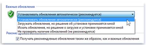 Можно решить, какие обновления должны автоматически загружаться и устанавливаться. 4. В группе Рекомендуемые обновления установите флажок Получать рекомендуемые обновления таким же образом, как и важные обновления и нажмите кнопку ОК. Можно также разрешить установку обновлений всем пользователям, установив флажок Разрешить всем пользователям устанавливать обновления на этот компьютер.