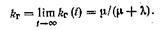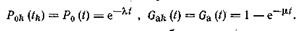 Коэффициент готовности. Этот показатель характеризует частично совокупность свойств безотказности и ремонтопригодности и представляет собой вероятность того, что объект окажется работоспособным в произвольный момент времени, кроме планируемых периодов, в течение которых использование объекта по назначению не предусматривается. Получение выражения для показателя кг (t) через единичные показатели в общем виде не имеет особого смысла, поскольку оно обычно не используется ввиду его сложности и громоздкости. Практическое значение имеет получение этого выражения для тех случаев, когда интервалы времени безотказной работы и восстановления на каждом цикле экспоненциальные и не зависят от номера цикла, т. е.