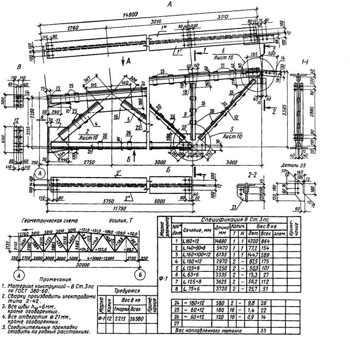 Чертёж фермы цеха промышленного здания