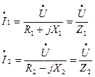 Токи в ветвях схемы определяются по закону Ома в комплексной форме записи: