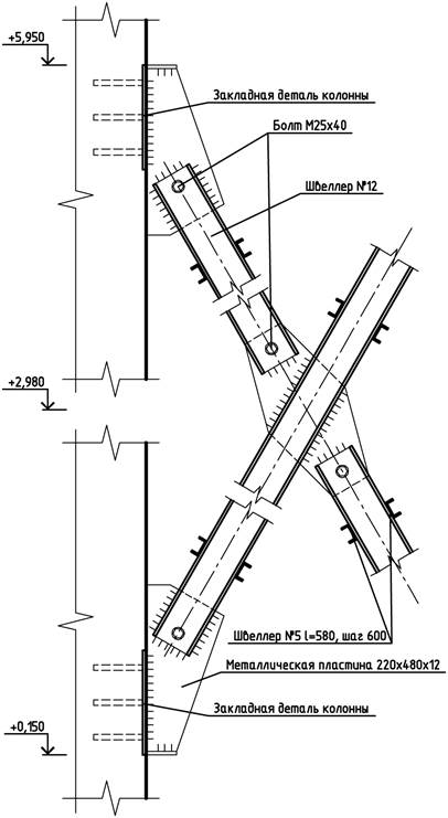 грузоподъемности и режима работ. Связи по колоннам установлены в середине температурного блока. Связи в покрытии установлены в середине и по краям температурного блока.