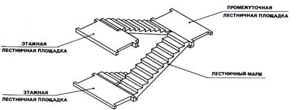Лестницы служат для сообщения между этажами и для эвакуации. В зависимости от числа маршей, находящихся в пределах высоты одного этажа, лестницы делят на одно, -двухмаршевые (рис. 20) и трехмаршевые.