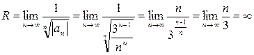 Найдем радиус сходимости, применяя обратный признак Коши::
