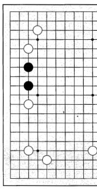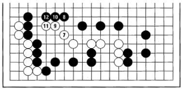 Если Б пытается выбежать (7 и 9), Ч запечатывает группу. У Ч сильная плотная позиция, и Б будет сложно построить два глаза внутри.