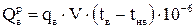где qо - удельная отопительная характеристика здания, принимается по табл.1.4; a - поправочный коэффициент, учитывающий климатологические условия района строительства, принимается равным: - при tно > -10 оС a=1,2, - при tно = -20 оС a=1,1, - при tно = -30 оС a=1,0, Примечание: промежуточные значения коэффициентов определяются линейной интерполяцией. V - строительный объем здания по наружному обмеру, м3; tв - расчетное значение средневзвешенной температуры воздуха в отапливаемых помещениях, оС; tно - расчетное значение температуры наружного воздуха для проектирования системы отопления, оС. 1.2.2.Тепловой поток вентиляции