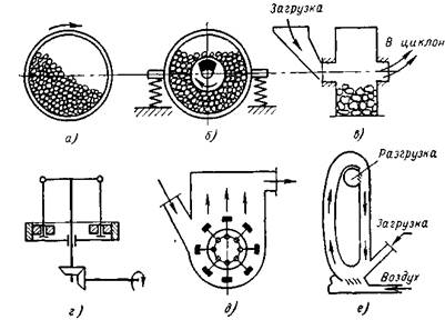 Рисунок 13 – Основные схемы барабанных мельниц