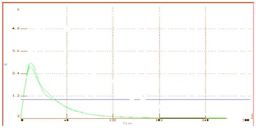 График отработки внешнего возмущения Из графиков следует, что при настройке системы по вышеприведенному методу, мы получаем довольно хорошие результаты.