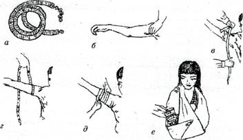 Рис. 4. Этапы наложения артериального жгута (а-е)