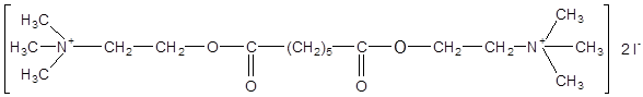 Формы выпуска: ¾ ампулы 2% раствора 10 мл. В организме препарат быстро гидролизуется холинэстеразой плазмы крови (псевдохолинэстеразой). У лиц с генетически обусловленной недостаточностью холинэстеразы действие препарата может удлиняться до 6–8 часов. Для прекращения действия суксаметония в данном случае используется переливание свежей цитратной крови, содержащей псевдохолинэстеразу. Показания: 1. Интубация трахеи. 2. Кратковременные хирургические операции. Побочные эффекты: 1. Мышечные боли (связаны с микротравмами, полученными в результате интенсивных мышечных сокращений в первые мгновения после начала деполяризации). 2. Аритмии. В связи с потерей калия мышечной тканью возникает гиперкалиемия, способствующая развитию брадикардии, вплоть до остановки сердца. Особенно чувствительны пациенты с ожогами, нервно-мышечными заболеваниями, черепно-мозговой травмой, перитонеальными инфекциями, почечной недостаточностью. 3. Злокачественная гипертермия. Проявляется в быстром и значительном повышении температуры после введения препарата. Относится к фармакогенетическим заболеваниям, развивается с частотой 1:20000. Возникает вследствие разобщения окислительного фосфорилирования в митохондриях мышц. 4. Повышение внутриглазного давления. 5. Аллергические реакции (эритематозная сыпь, отеки губ, век, миндалин, снижение АД, бронхоспазм). Противопоказания: · Дети грудного возраста. · Глаукома. · Заболевания печени. · Анемия. · Беременность. Таблица 4