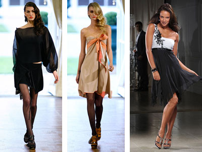 Если ты хочешь излучать элегантность, выбирай платья с ассиметричными деталями. В том случае, если ты остановила выбор на монохромном платье, можно надеть ажурные колготки. Такие тенденции можно пронаблюдать в коллекциях Alexis Mabille, Oscar de la Renta, Giles.