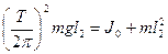 где l – расстояние от центра тяжести до точки подвеса. Если маятник перевернуть, то период его колебаний изменится, т.к. изменится момент инерции и расстояние от оси вращения до центра тяжести J= Воспользуемся теоремой Гюйгенса – Штейнера для определения момента инерции при параллельном переносе оси вращения
