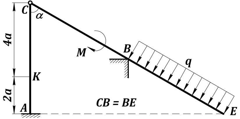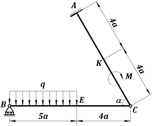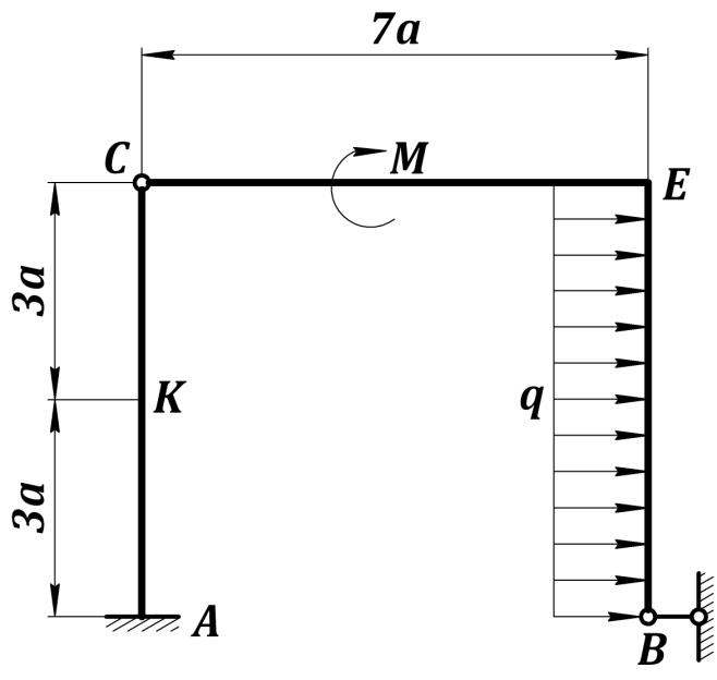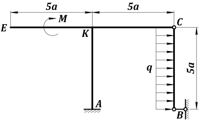 Решение. 1. Рассмотрим равновесие данной жёсткой рамы