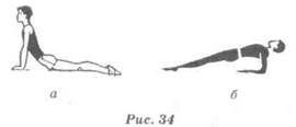 Упор лежа сзади на предплечьях — аналогичный упору лежа сзади, но руки упираются предплечьями (рис. 34, б).