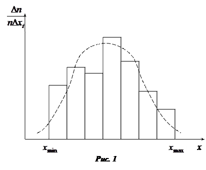 Случайные погрешности результатов эксперимента можно рассматривать как разновидность случайных величин (событий), т.е. переменных величин, значения которых зависят от случая. Случайные величины могут принимать любые действительные значения. Всевозможные свойства большого количества случайных величин изучаются теорией вероятностей, основным понятием которой является вероятность – числовая характеристика возможности появления некоторого определенного события в цепи событий, которые могут повторяться неограниченное число раз. Допустим, что при выполнении n измерений физической величины х получен некоторый набор чисел