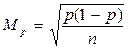 - как частное от деления среднего квадратического отклонения на квадратный корень из численности выборки или квадратный корень из дисперсии признака, где,