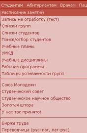 На сайте http://krasgmu.ru/news.php в меню Университет, Корпоративная информация можно видеть: · устав КрасГМУ, · схемы и планы расположения корпусов, · врачебные клятвы гиппократа, врача России и клятву православного врача. В меню Студентам представлена разнообразная информация, которая необходима обучающимся:
