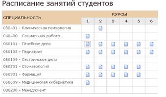 Студенты могут записаться на отработку при помощи специального модуля Запись на отработку. Ниже можно видеть пример учебного плана для специальности Фармация.