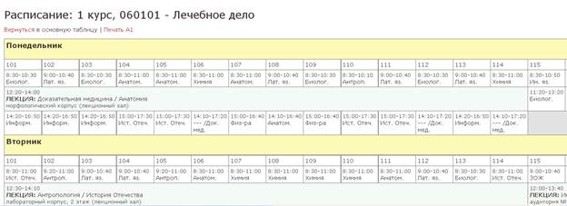 Расписание можно просмотреть более подробно, а при необходимости его можно распечатать.