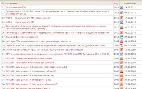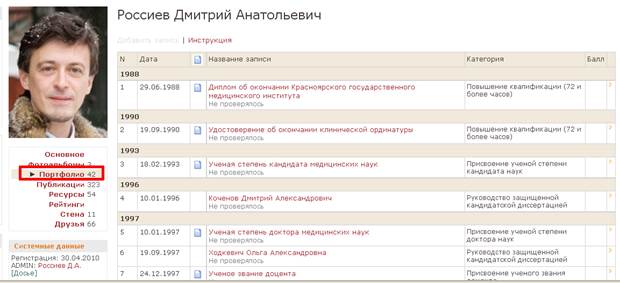 Электронный портфолио. В КИСКрасГМУ каждый студент (в том числе любой другой пользователь, будь то преподаватель или врач) имеет возможность вести свое индивидуальное портфолио, заполнять список собственных публикаций, формировать фотоальбомы, дружить с другими пользователями в пределах портала.