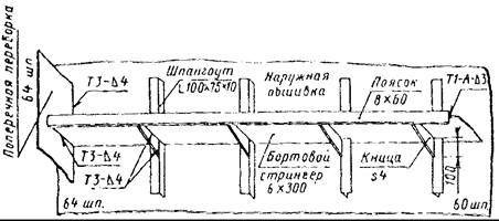 6. Бортовой стрингер со шпангоутами и обшивкой борта