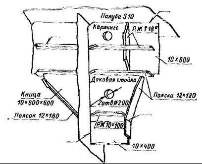 8. Ребро поперечной переборки с продольной бортовой балкой