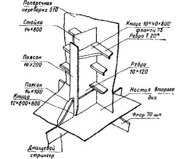 11. Доковая стойка поперечной переборки с настилом второго дна