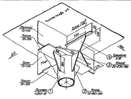 Характерной чертой корпусных конструкций является наличие типовых соединений отдельных частей корпуса, выполненных с помощью соединительных деталей, – книц, бракет и пр. К соединениям отдельных связей корпуса относятся соединения: флора со шпангоутом с помощью скуловой кницы, шпангоута с бимсом, бортового стрингера со шпангоутом, карлингса с бимсом, пиллерса с карлингсом и др. Некоторые типы соединений показаны на рисунках, приведенных в табл. 4.1.
