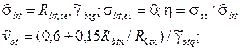 Г.1 Аналитическая зависимость криволинейных диаграмм деформирования бетона принимается в виде: где ε т, σ т, Ет - соответственно относительные деформации, напряжения, начальные модули упругости (d - знак дифференциала); т - индекс материала (для бетона m = b,bt;для арматуры т = s); v m - коэффициент изменения секущего модуля, определяемый по формуле 0153S10-03172 здесь v 0 - начальный коэффициент изменения секущего модуля (в начале диаграммы или в начале ее криволинейного отрезка); ω1, ω2 - коэффициенты, характеризующие полноту диаграммы материала, ω2 = 1 - ω1; η- уровень приращения напряжений, который определяется как отношение 0153S10-03172 (σ m - σ m,el) ³ 0; σ m,el - напряжения, отвечающие пределу упругости материала; vkm - коэффициент изменения касательного модуля, связанный с коэффициентом изменения секущего модуля соотношением 0153S10-03172 В формулах (Г.2) и (Г.4) знак плюс принимают для диаграммы деформирования арматуры и для восходящей ветви диаграммы деформирования бетона, а знак минус - для нисходящей ветви диаграммы деформирования бетона. Нисходящую ветвь диаграммы разрешается использовать до уровня напряжений η ³ 0,85 (с учетом дополнительных указаний Г.2). Г.2 При одноосном и однородном сжатии бетона исходная диаграмма деформирования бетона (рисунок Г.1) описывается зависимостями (Г.1) - (Г.4), в которых следует принимать: для обеих ветвей диаграммы 0153S10-03172 для восходящей ветви 0153S10-03172 для нисходящей ветви 0153S10-03172 0153S10-03172