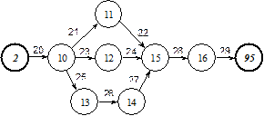 Примечание. 1. Целесообразна параллельная разработка программ: модификация данных, быстрого поиска данных, преобразования векторов; 2. Работа 60 предшествует разработке программ; 3. Результат работы 61 требуется к моменту начала комплексной отладки программного обеспечения обработки данных; 4. Работа 69 следует за работой 68.