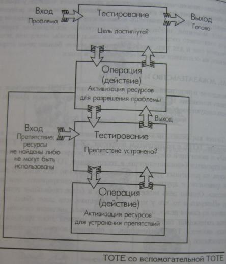 Кто говорил, что НЛП сложно и запутанно? У вас есть проблема, следовательно, вы стараетесь найти несколько ресурсов. Готово! Следующая проблема. Однако иногда приходится искать больше ресурсов. При поиске ресурсов люди сталкиваются с препятствиями: опыт, который мешает им использовать имеющиеся у них либо разыскиваемые ресурсы. К примеру, кто-то отлично знает, что он может сделать для того, чтобы получить определенную должность. У него есть знания и возможности, чтобы достигнуть своей цели. Например, он может приобрести синий пиджак и научиться говорить внушительным гортанным голосом. Однако он этого не делает, потому что по той или иной причине он этого не хочет (препятствие). Или, может быть его охватило сильное чувство отчаяния (препятствие), или ему мешает какая-то трудно объяснимая мелочь (препятствие). В этом случае для того, чтобы преодолеть препятствие, ему необходимы прежде всего ресурсы, а точнее, их разновидность — вспомогательные ресурсы. Выражаясь при помощи терминов ТОТЕ, если мы не в состоянии найти эффективные «операции», чтобы достичь цели, мы начинаем использовать вспомогательную ТОТЕ с целью «найти ресурс» либо вспомогательную ТОТЕ с целью «использовать найденный ресурс». И это именно то, на чем основано большинство техник НЛП: помогать устранять, избегать либо преодолевать препятствия, чтобы дать человеку возможность свободно распоряжаться своими ресурсами, так как НЛП исходит из того, что изначально человек ими располагает. Одна из пресуппозиций, автором которой является Милтон Эриксон, гласит: «Люди располагают ресурсами для позитивного изменения». Человеческую жизнь можно представить в виде гигантской системы, состоящей из заключающихся друг в друге ТОТЕ. Психологический набор ячеек, в каждой ячейке которого находится еще одна, поменьше. Понятие «устранять препятствия» является вспомогательной ТОТЕ понятия «активизировать свои ресурсы». Однако решение проблемы, в свою очередь, тоже представляет собой вспомогательную ТОТЕ чего-то большего. Вопрос, который относится к объединяющей ТОТЕ, звучит следующим образом: «Почему я хочу этого достичь? Что представляют собой те ценности, которые становятся целью?» Вернемся к нашему примеру. Кто-то хочет получить определенную должность. Но в чем заключается вспомогательная ТОТЕ получения должности? Для чего ему, вообще, нужна эта должность? В этом случае мы обращаемся к более крупной, всеохватывающей разновидности ТОТЕ — мета-ТОТЕ. Возможно, целью мета-ТОТЕ является возможность тратить больше денег, или возможность сделать свою жизнь более интересной и насыщенной. Эти личные мотивы, в свою очередь, могут быть подчинены еще более высоким ценностям, как например, «почувствовать уверенность в своих силах» или «вести осмысленную жизнь». Впрочем, осознание такой иерархии в своей собственной системе ценностей тоже является важным ресурсом.