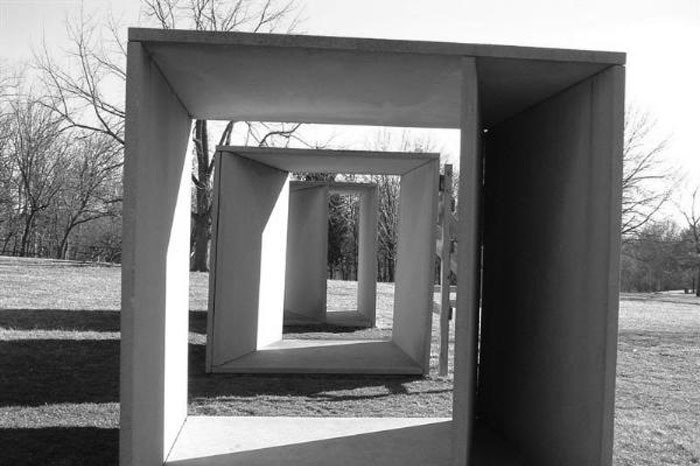 "Квадрат, поделенный на 4 равные части, каждую из которых заполняют параллельные полосы в различных направлениях", 1982. Гравюра на дереве Во-первых, она проявляется в том, что графические работы Левитта иногда ложились в основу его скульптуры. Это мы можем наблюдать на примере уже рассмотренной нами «Серии с неполными разомкнутыми кубами» 1974 года: сначала появился рисунок на эту тему, демонстрирующий все возможные вариации, и лишь затем – скульптура, отталкивающаяся от рисунка. Карл Андре (англ. Carl Andre, 16 сентября 1935, Куинси, Массачусетс) — американский художник, представитель минимализма. Характерные черты скульптуры Андре — использование промышленных материалов, модульных единиц, артикуляция трехмерности посредством рассмотрения негативного и позитивного пространства. Андре стремился свести словарь скульптуры к базовым фонемам, таким как квадраты, кубы, линии и диаграммы. В исследовании формы структуры и пространства, Андре делал акцент на отношения места и зрителя. Его композиции лежат где-то между бытием идей и тестированием границ физического присутствия.