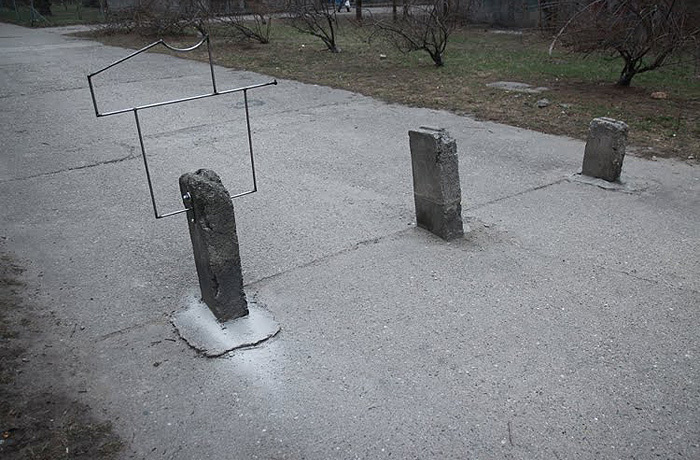 Все его проекты предстают инородными телами в той среде, в которую их помещают. Гранитный брус, зажатый с двух сторон массивами застывшего бетона, вторгается в пространство леса, противопоставляя свою искусственно отточенную форму дикому окружению. Идеальные формы параллелепипедов и квадратов, невозможные в органической среде, ставят перед нами этические вопросы о возможности слияния двух измерений.» К уличным художникам-минималистам мы можем отнести и итальянца Манилэсса (Moneyless), который родился в 1980-м году в Милане. Своим псевдонимом он красноречиво подтверждает выбор используемых материалов.