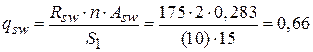 Величину поперечної сили, що сприймається поперечною арматурою (хомутами), обчислюємо за формулою