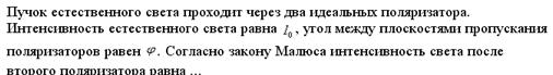 При угле, равном углу Брюстера, отраженный луч будет полностью поляризованным. Степень поляризации преломленного луча при этом достигнет наибольшего значения, но этот луч остается поляризованным только частично. В отраженном свете колебания происходят только в плоскости, перпендикулярной плоскости падения. Призма Николя является идеальным поляризатором, то есть свободно пропускает колебания, параллельные плоскости пропускания призмы, и полностью задерживает колебания, перпендикулярные к этой плоскости. Упавший на кристалл луч разделяется внутри кристалла на два луча, плоско-поляризованный (необыкновенный) и перпендикулярно-поляризованный (обыкновенный). Т.к.